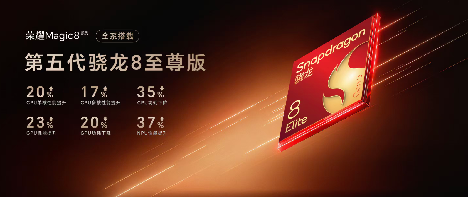 榮耀Magic8全系搭載年度最強(qiáng)旗艦芯片第五代驍龍?8至尊版,CPU、GPU和AI算力相比上一代都有大幅提升,性能跑分具有領(lǐng)先跨代表現(xiàn)。榮耀與高通自2022年成立了聯(lián)合實(shí)驗(yàn)室,共同深耕新一代AI與芯片底層技術(shù),針對芯片的各個模塊定制專屬優(yōu)化引擎,實(shí)現(xiàn)超高芯片使用率。