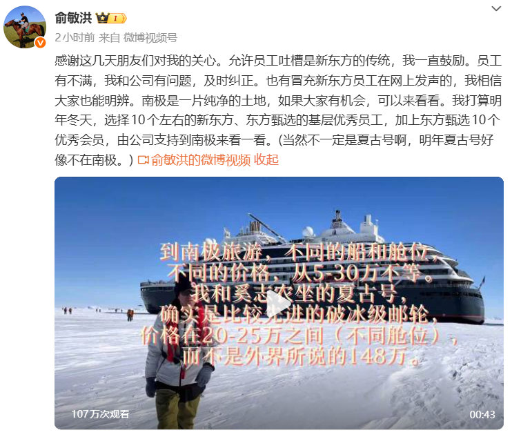 他在信中寫道,新東方要成為“希望的播種者”,東方甄選應成“商家良知的代表”,新東方文旅要“讓更多的人把世界裝在心里”。